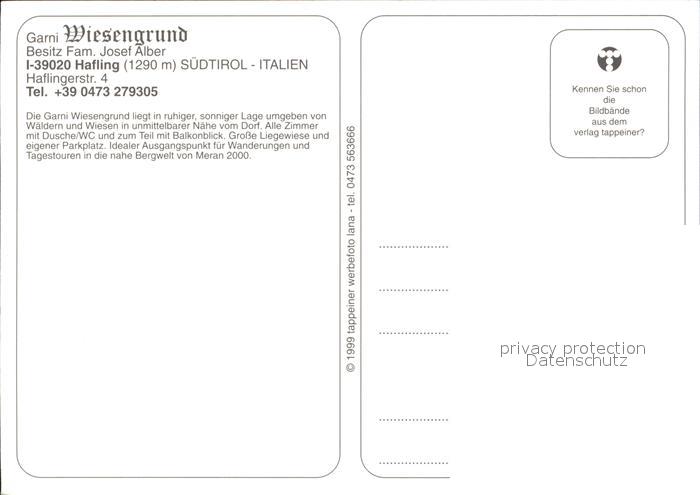 Hafling Garni Wiesengrund postalisch nicht gelaufen Erhaltung siehe scans