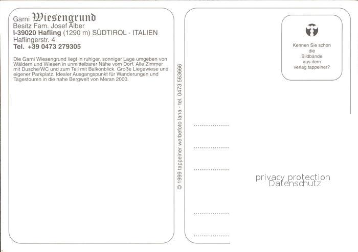 Hafling Garni Wiesengrund postalisch nicht gelaufen Erhaltung siehe scans