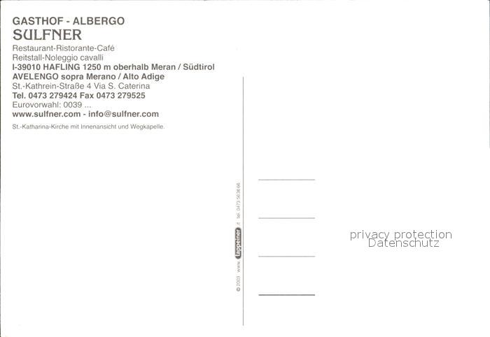 Hafling Gasthaus Albergo Sulfner postalisch nicht gelaufen Erhaltung siehe scans