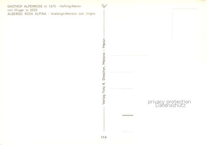 Hafling Gasthof Alpenrose Ifinger postalisch nicht gelaufen Erhaltung siehe scans [PaolaD17]