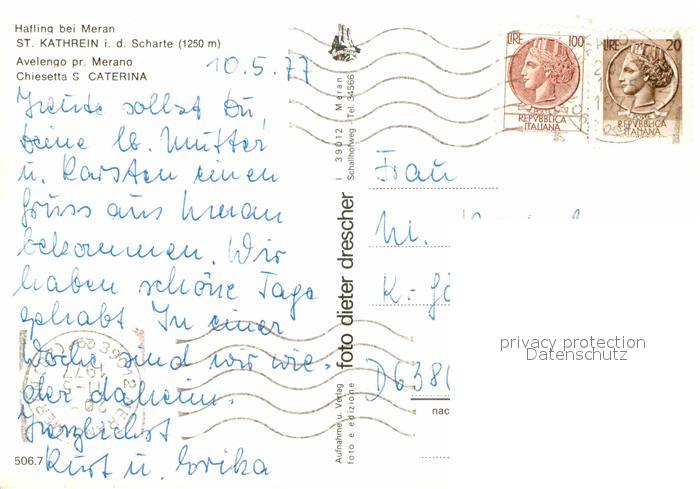 Hafling Kirche Sankt Caterina postalisch nicht gelaufen Erhaltung siehe scans [AndreD76]