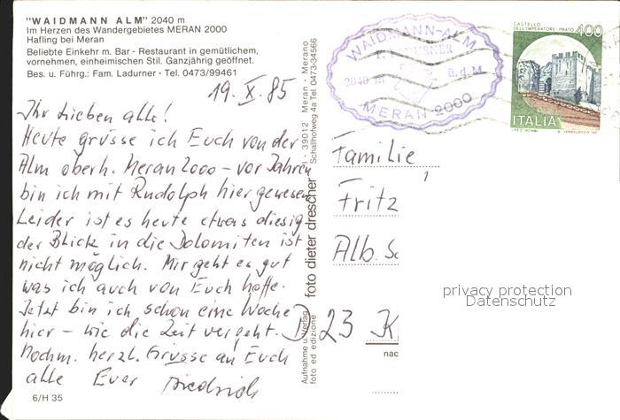 old postcard Hafling Waidmann Alm postalisch gelaufen Erhaltung siehe scans