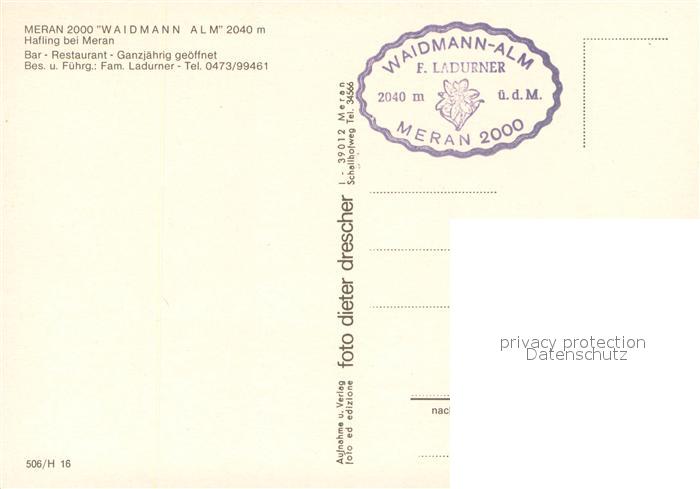 Hafling Waidmann Alm postalisch nicht gelaufen Erhaltung siehe scans [WerneD78]