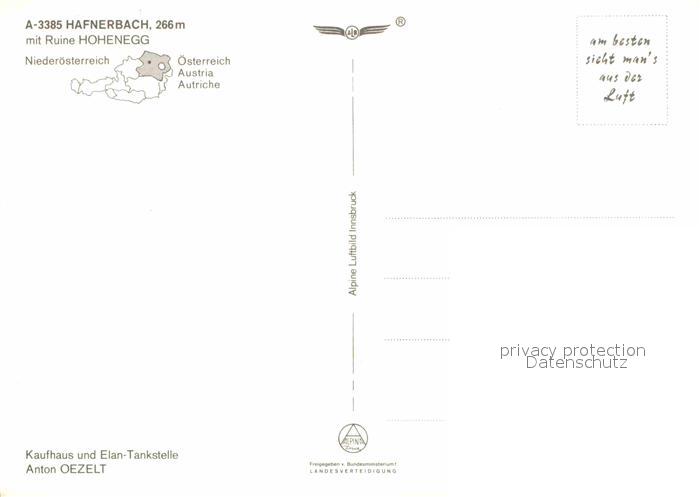 72673393 Hafnerbach mit Ruine Hohenegg Fliegeraufnahme postalisch nicht gelaufen Erhaltung siehe scans [FriedD77] KatCode: 11390123031910