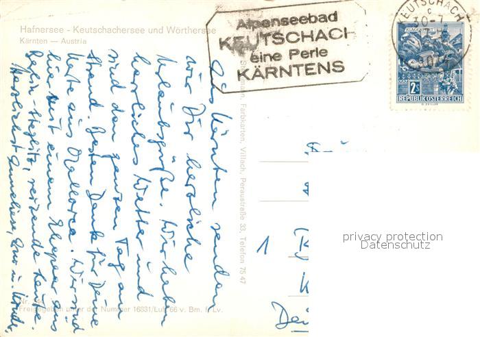 73049379 alte Postkarte Hafnersee Fliegeraufnahme Keutschachersee Woerthersee postalisch gelaufen Erhaltung siehe scans [KathaD81] KatCode: 11390
