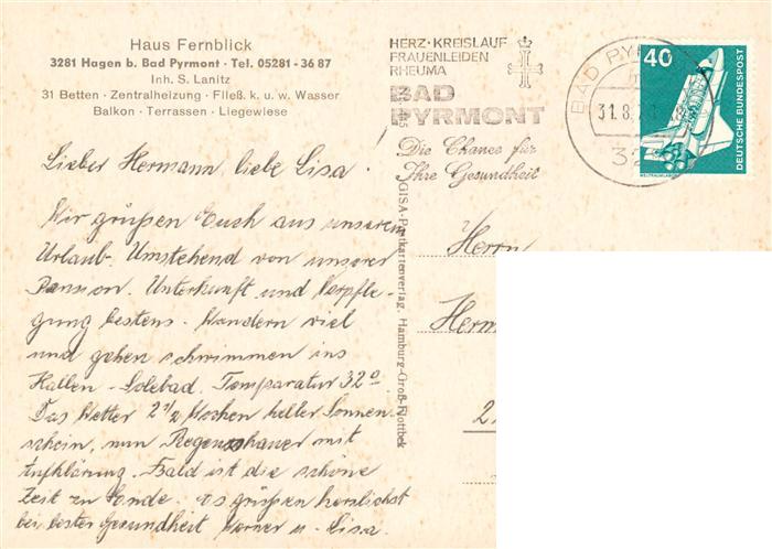 73902875 alte Postkarte Hagen Bad Pyrmont Haus Fernblick Treppenaufgang postalisch gelaufen Erhaltung siehe scans [WerneD78] KatCode: 11110003252003