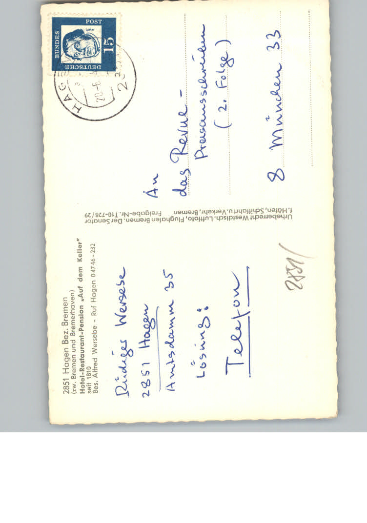 31122588 Hagen Bremischen postalisch nicht gelaufen KatCode: 11110003352019