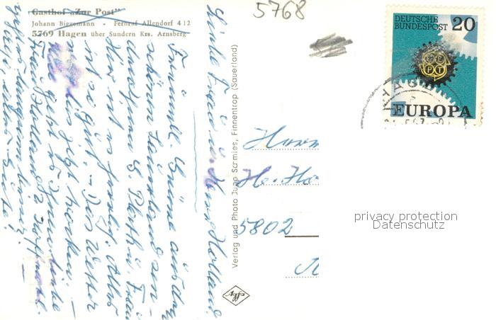 73705710 alte Postkarte Hagen Sorpetal Kirche Panorama Fliegeraufnahmen postalisch gelaufen Erhaltung siehe scans [WerneD78] KatCode: 11110005958044