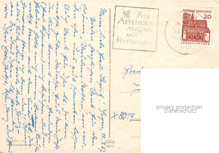 72631916 alte Postkarte Hagen Westfalen Am Hauptbahnhof postalisch gelaufen Erhaltung siehe scans [LiesaD40] KatCode: 11110005914000
