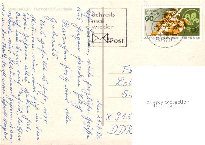 72970302 alte Postkarte Hagen Westfalen Fachhochschule Bus postalisch gelaufen Erhaltung siehe scans [FriedD77] KatCode: 11110005914000