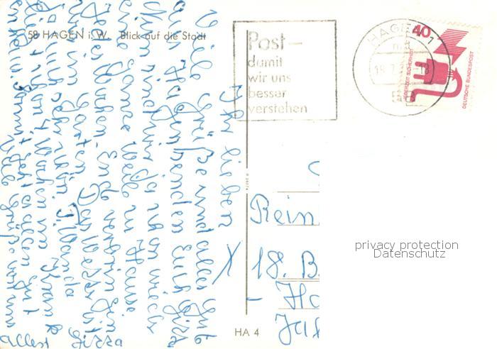 73779404 alte Postkarte Hagen Westfalen Fliegeraufnahme postalisch gelaufen Erhaltung siehe scans [WerneD78] KatCode: 11110005914000