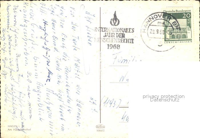 72243606 alte Postkarte Hagen Westfalen Hauptbahnhof postalisch gelaufen Erhaltung siehe scans KatCode: 11110005914000
