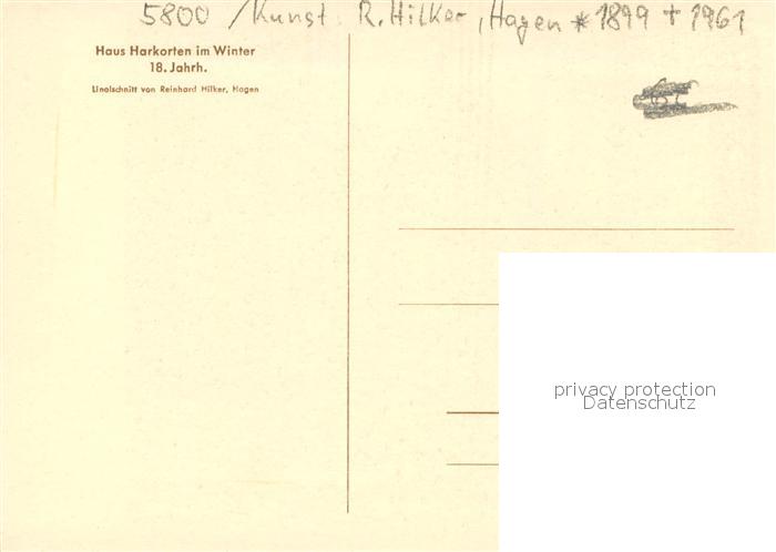 73697427 Hagen Westfalen Haus Harkorten im Winter 18. Jahrh. Kunstkarte R.Hilker postalisch nicht gelaufen Erhaltung siehe scans [LiesaD40] KatCode: 11110005914000
