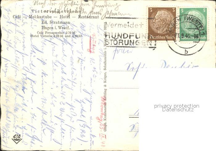 31841570 alte Postkarte Hagen Westfalen Hotel-Cafe Victoria postalisch gelaufen Erhaltung siehe scans KatCode: 11110005914000
