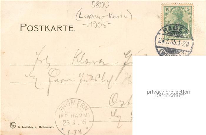 73708952 alte Postkarte Hagen Westfalen Kaiser-Wilhelm-Denkmal Suedstr. Partie im Stadtpark Bahnhof u. Post Koelnerstr. Lupen-Karte postalisch gelaufen Erhaltung siehe scans [LiesaD40] KatCode: 11110005914000