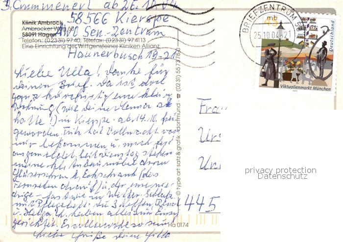 73541247 alte Postkarte Hagen Westfalen Klinik Ambrock Fliegeraufnahme postalisch gelaufen Erhaltung siehe scans [WerneD78] KatCode: 11110005914000