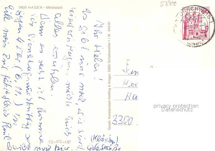 72912341 alte Postkarte Hagen Westfalen Mittelstadt Hochhaus Platz postalisch gelaufen Erhaltung siehe scans [FriedD77] KatCode: 11110005914000