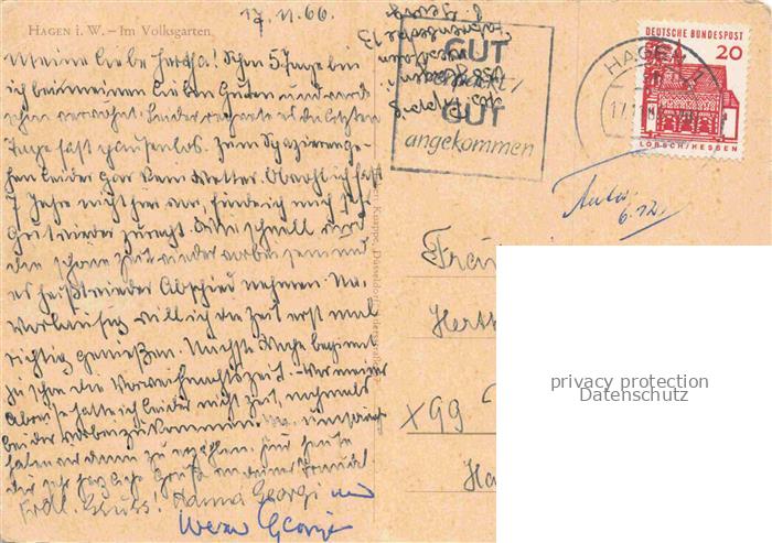 74136928 alte Postkarte HAGEN Westfalen NRW Im Volksgarten postalisch gelaufen Erhaltung siehe scans [WerneD78] KatCode: 11110005914000