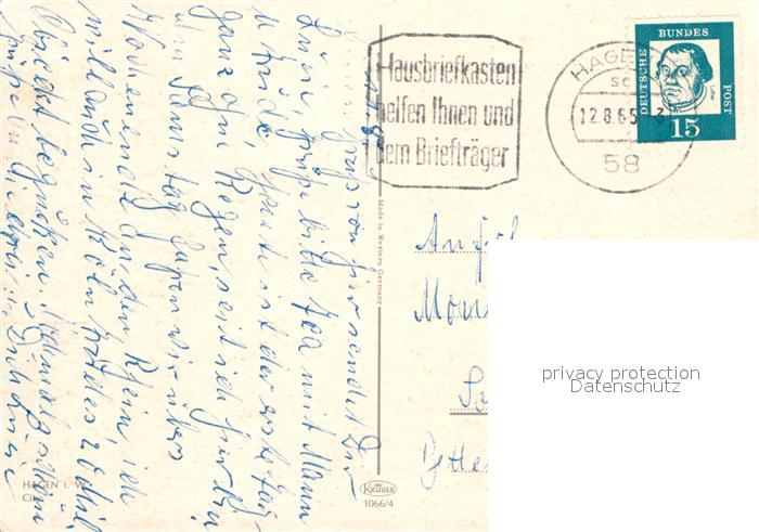 72987653 Hagen Westfalen NRW postalisch gelaufen Erhaltung siehe scans [LiesaD40] alte Postkarte Lies Katcode 11110003352019