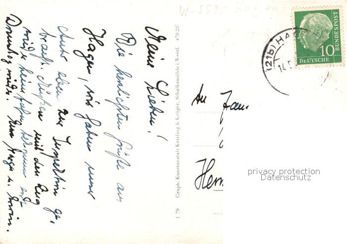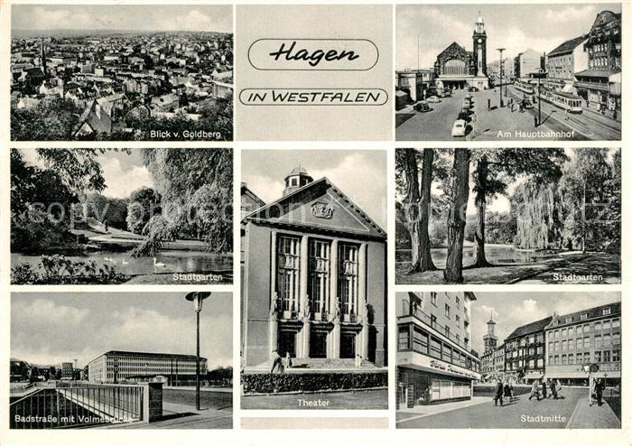 73596228 alte Postkarte Hagen Westfalen Panorama Blick vom Goldberg Bahnhof Stadtgarten Badstrasse Volmebruecke Theater Stadtmitte postalisch gelaufen Erhaltung siehe scans [FriedD77] KatCode: 11110005914000