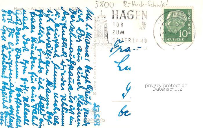 73708160 alte Postkarte Hagen Westfalen Ricarda-Huch-Schule postalisch gelaufen Erhaltung siehe scans [LiesaD40] KatCode: 11110005914000