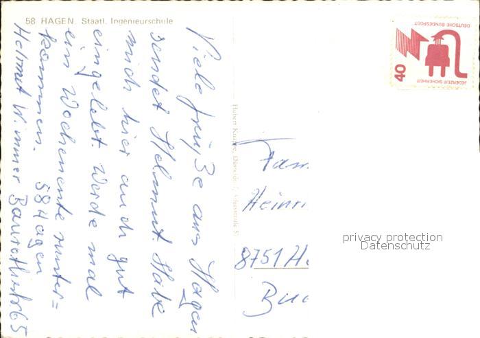 72483657 Hagen Westfalen Staatl Ingenieurschule postalisch nicht gelaufen Erhaltung siehe scans KatCode: 11110005914000