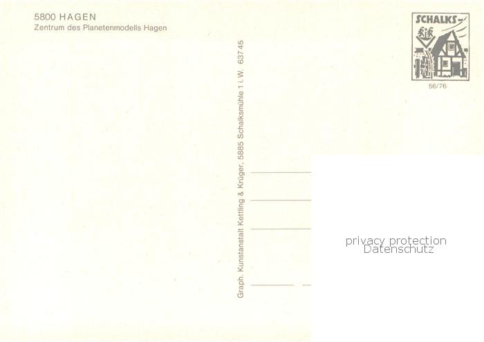 73780336 Hagen Westfalen Zentrum des Planetenmodells Hagen postalisch nicht gelaufen Erhaltung siehe scans [FriedD77] KatCode: 11110005914000