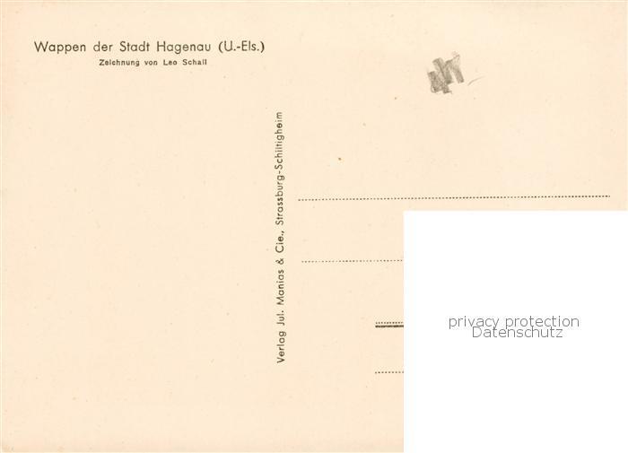 13852024 Hagenau 67 Bas-Rhin Alsace Stadtwappen postalisch nicht gelaufen Erhaltung siehe scans [WerneD78] Wern Katcode 11170067267180