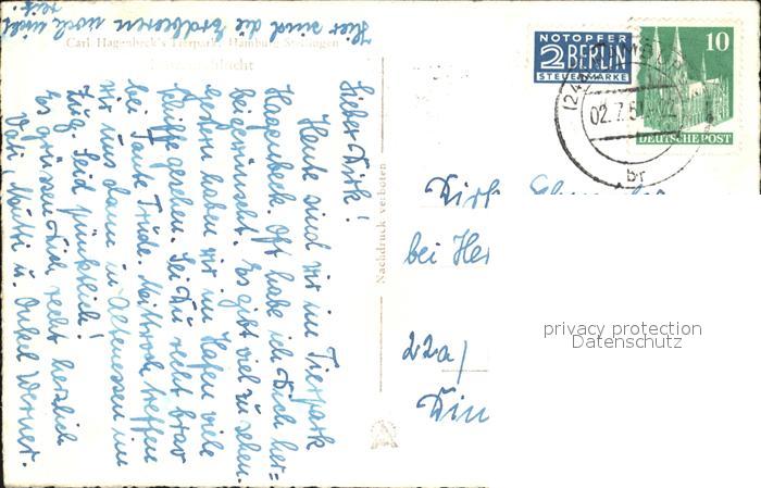 alte Postkarte Hagenbeck Hamburg-Stellingen Loewenschlucht postalisch gelaufen Erhaltung siehe scans