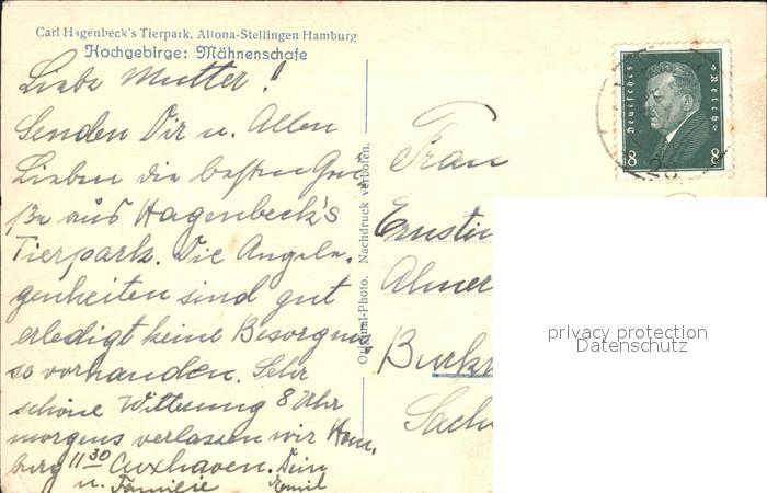 alte Postkarte Hagenbeck Tierpark Altona-Stellingen Maehnenschafe postalisch gelaufen Erhaltung siehe scans