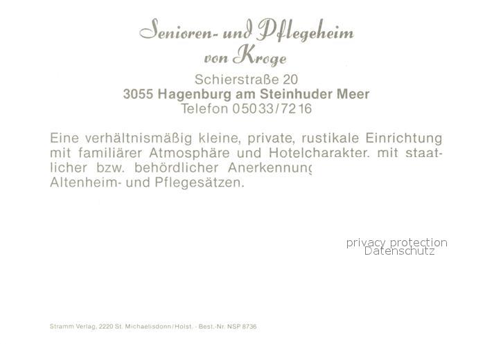 73094706 Hagenburg Senioren- Pflegeheim von Kroge postalisch nicht gelaufen Keine Postkarte (siehe scan) Erhaltung siehe scans [NatalD47] KatCode: 11110003257010