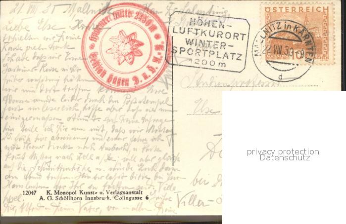 71566846 alte Postkarte Hagenerhuette gegen Schlapperebenkees Mallnitzer Tauern Schutzhaus postalisch gelaufen Erhaltung siehe scans KatCode: 11390