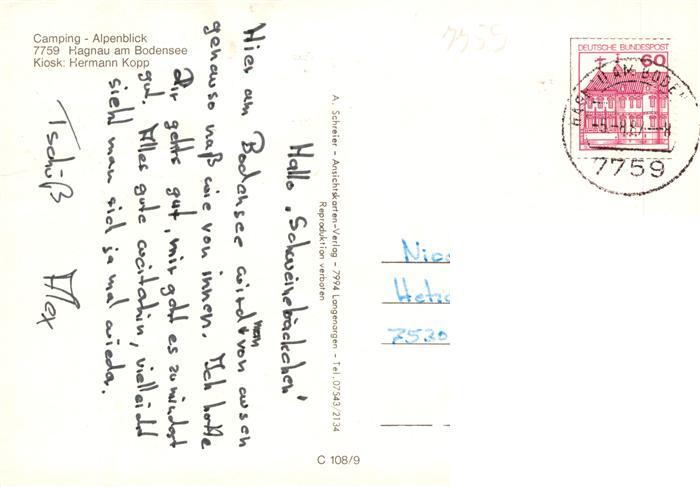 73941886 alte Postkarte Hagnau Bodensee Camping Alpenblick Panorama Strand postalisch gelaufen Erhaltung siehe scans [WerneD78] KatCode: 11110008435018