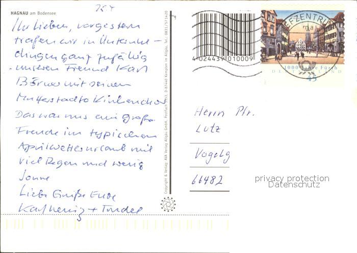 72000111 alte Postkarte Hagnau Bodensee Fliegeraufnahme postalisch gelaufen Erhaltung siehe scans KatCode: 11110008435018