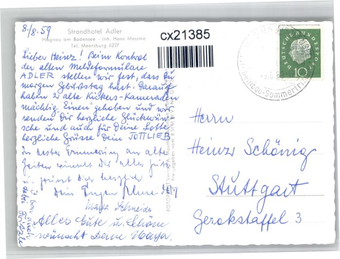30739635 alte Postkarte Hagnau Bodensee Fliegeraufnahme postalisch gelaufen KatCode: 11110008435018