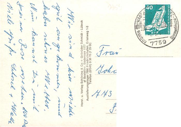 73941903 alte Postkarte Hagnau Bodensee Fliegeraufnahmen Bootssteg Park postalisch gelaufen Erhaltung siehe scans [WerneD78] KatCode: 11110008435018