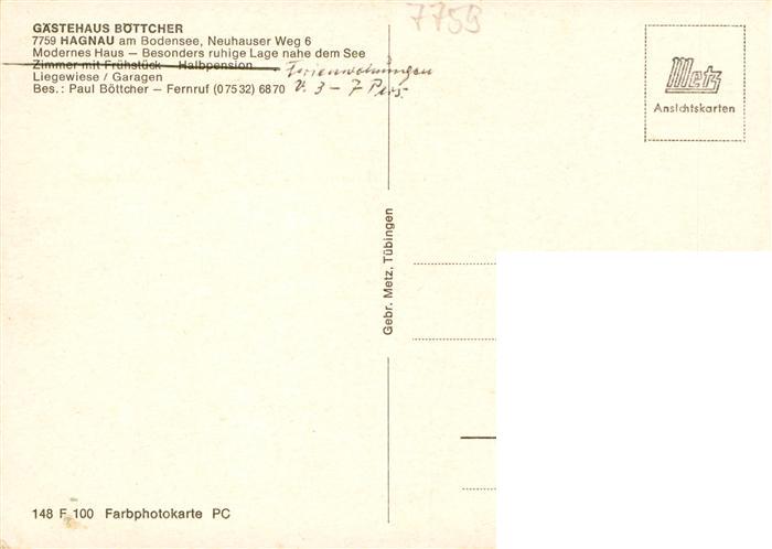 73941931 Hagnau Bodensee Gaestehaus Boettcher postalisch nicht gelaufen Erhaltung siehe scans [WerneD78] KatCode: 11110008435018