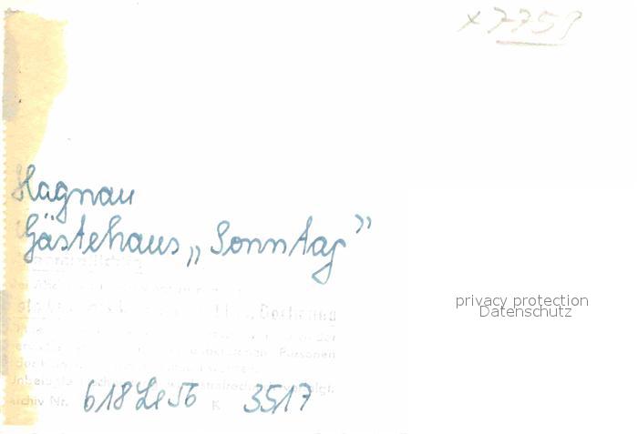 42898792 Hagnau Bodensee Gaestehaus Sonntag postalisch nicht gelaufen Verlagsrohabzug (keine Postkartenrueckseite) Erhaltung siehe scans [NatalD47] Verlagsrohabzug (keine Postkartenrueckseite) Nata Katcode 11110008435018