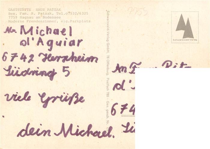 73941915 Hagnau Bodensee Gaststaette Haus Patzak postalisch nicht gelaufen Erhaltung siehe scans [WerneD78] KatCode: 11110008435018