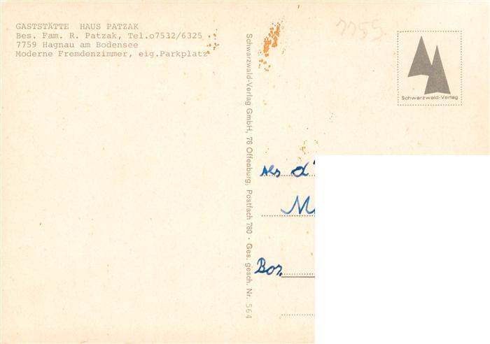 73941916 Hagnau Bodensee Gaststaette Haus Patzak postalisch nicht gelaufen Erhaltung siehe scans [WerneD78] KatCode: 11110008435018