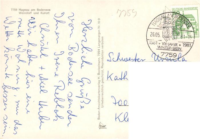 73941488 alte Postkarte Hagnau Bodensee Kirche Bootshafen Seepanorama postalisch gelaufen Erhaltung siehe scans [WerneD78] KatCode: 11110008435018