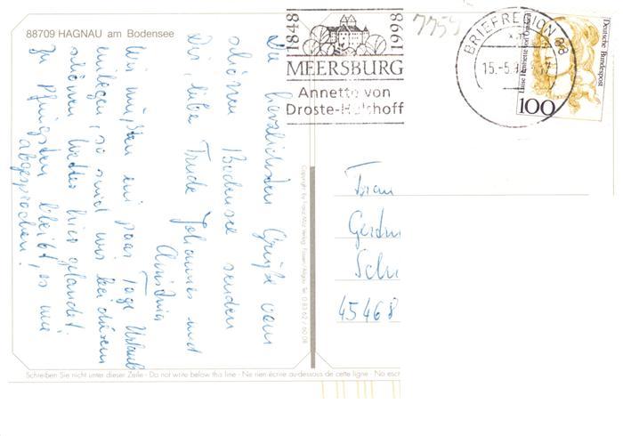 73943195 alte Postkarte Hagnau Bodensee Luftaufnahme Denkmal Minigolf Ortszentrum Hotel Restaurant postalisch gelaufen Erhaltung siehe scans [FriedD77] KatCode: 11110008435018