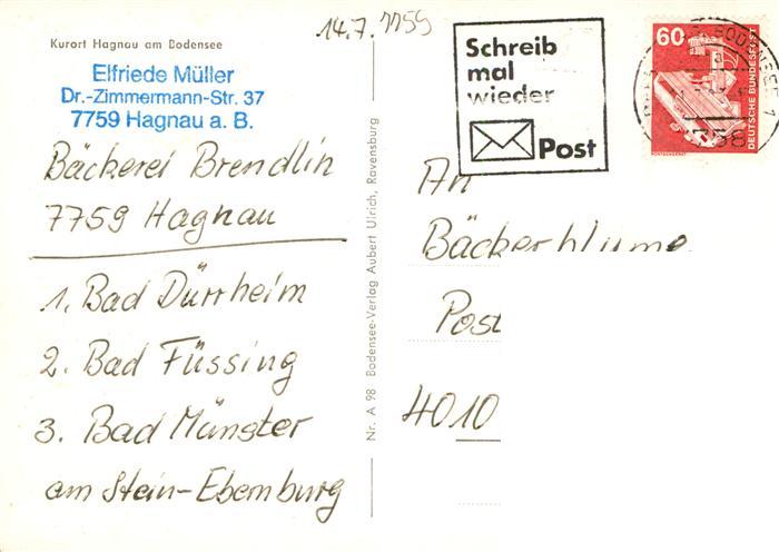 73942118 alte Postkarte Hagnau Bodensee Panorama mit Kirche postalisch gelaufen Erhaltung siehe scans [WerneD78] KatCode: 11110008435018