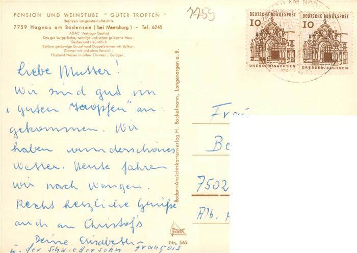 73941481 alte Postkarte Hagnau Bodensee Panorama Weinstube Guter Tropfen Gastraeume postalisch gelaufen Erhaltung siehe scans [WerneD78] KatCode: 11110008435018