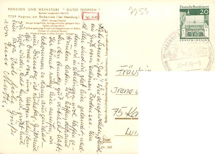 73942100 alte Postkarte Hagnau Bodensee Panorama Weinstube Guter Tropfen Gastraeume postalisch gelaufen Erhaltung siehe scans [WerneD78] KatCode: 11110008435018