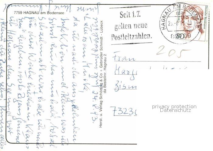 72768997 alte Postkarte Hagnau Bodensee Park Blick zur Kirche postalisch gelaufen Erhaltung siehe scans [FriedD77] KatCode: 11110008435018