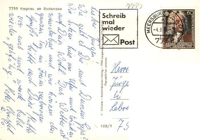 73941909 alte Postkarte Hagnau Bodensee Park Segelpartie Panorama Kirche postalisch gelaufen Erhaltung siehe scans [WerneD78] KatCode: 11110008435018