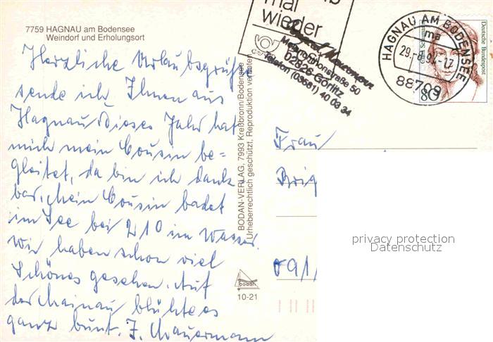 72716876 alte Postkarte Hagnau Bodensee Weindorf Erholungsort Fliegeraufnahme postalisch gelaufen Erhaltung siehe scans [FriedD77] KatCode: 11110008435018