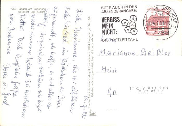 72455272 alte Postkarte Hagnau Bodensee Weindorf Kurort Hafen Ortsansicht postalisch gelaufen Erhaltung siehe scans KatCode: 11110008435018