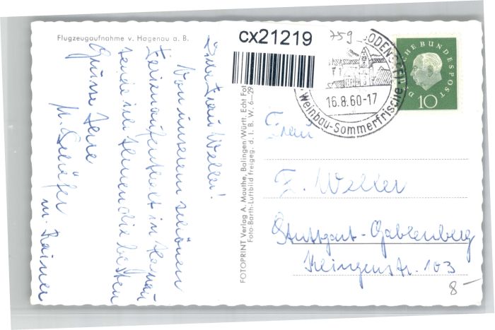 30740550 alte Postkarte Hagnau Fliegeraufnahme postalisch gelaufen KatCode: